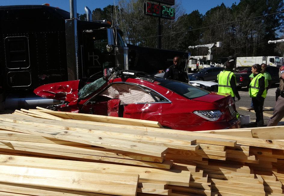 At approximately 10:50 am on Friday February 28, 2020, an 18 wheeler hauling lumber, driven by Jody Jenkins, 44, of Brooklyn, Texas, was south-bound on US-59 in Leggett. Jenkins' rig suddenly slammed into a red Mercedes Benz E-350, driven by Brenda Kirkling, 60, of Houston. Kirkling pulled out of the parking lot of the Chevron in Leggett but failed to yield. The impact caused Jenkins' rig to slide as lumber began to spill all over the roadway. Both vehicles slid and finally came to rest around 100 yards from the point of initial contact. Kirkling's vehicle came to rest on the side of Jenkins' rig. Allegiance Ambulance Service was dispatched to the scene along with the Livingston Volunteer Fire Department Heavy Rescue Unit, Officer McDuffie from the Corrigan Police Department, Sergeant Jason Paske with the Polk County Sheriff's Office and Troopers with the Texas Highway Patrol including Corporal Ramey Bass, Alan Stanton, Kevin Burman, Ashlee White., and Sergeant Sam Lattner. Sadly, Kirkling and her passenger, Linda Autry, 58, of Missouri City, Texas were both killed on impact. Jenkins is was physically okay. Justice of the Peace, Jamie Richardson performed an inquest at the scene. A first call car from Pace Funeral Home transported Kirkling and Autry from the scene. Traffic on 59 in Leggett was blocked during investigation and cleanup. Clifton Chevrolet out of Corrigan was summoned to clean up the mess. This accident remains under investigation from the Texas Highway Patrol.
