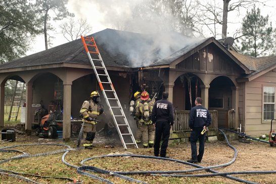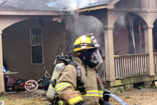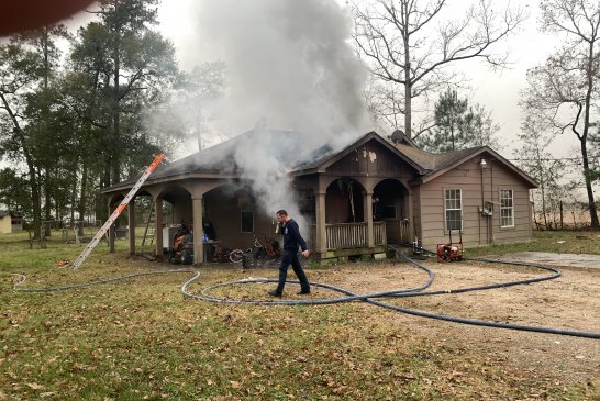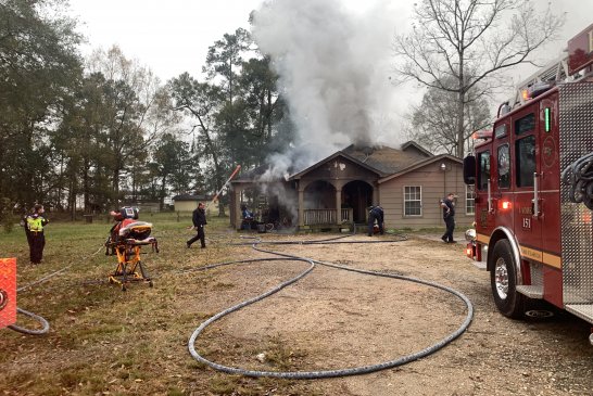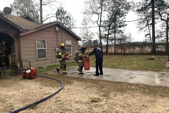 Just before 3:30 pm on Dec 15, 2020 , East Montgomery County Fire Department along with Porter and New Caney responded to a reported house fire in the 19700 block of Myers Road in New Caney. The caller was passing by when they saw flames. The resident was not home at the time of the fire. EMC Fire arrived first with heavy fire on the front porch spreading to the house. As crews began to fight the blaze EMC Chief Howard Rinewalt saw the Christmas tree through the front window. Knowing there could be gifts under that tree he immediately had a crew go in and investigate. Within seconds firefighters came out first with the tree, but right behind it arms full of gifts that were not yet damaged. Crews continued to battle the blaze and were able to stop the flames in the front of the home and attic area. As they were finishing up the homeowner arrived. They believe a heat lamp they left on the front porch for their puppies may have ignited the blaze. The Montgomery County Fire Marshals Office is investigating. The puppies were safe in a kennel in the back.