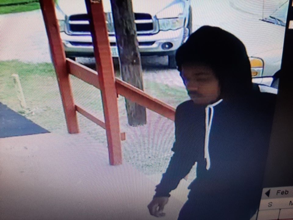 The attached photo is taken from the video surveillance system and the photo of the car was captured by a witness's cell phone. The car is thought to be a Ford Fusion that is blue in color.